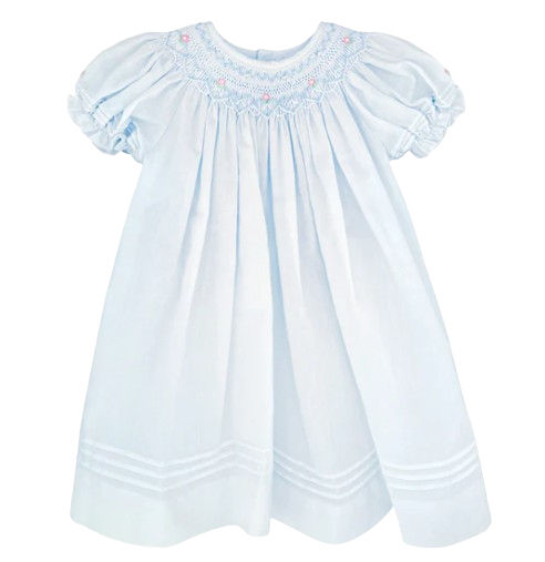 Daygown with Heart Smocking & Pearls - Blue