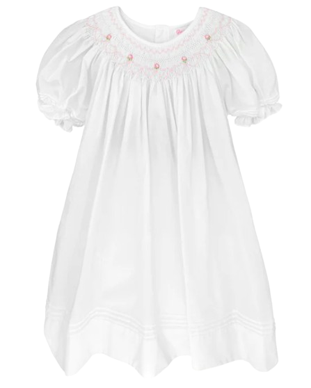 Daygown with Heart Smocking & Pearls - White